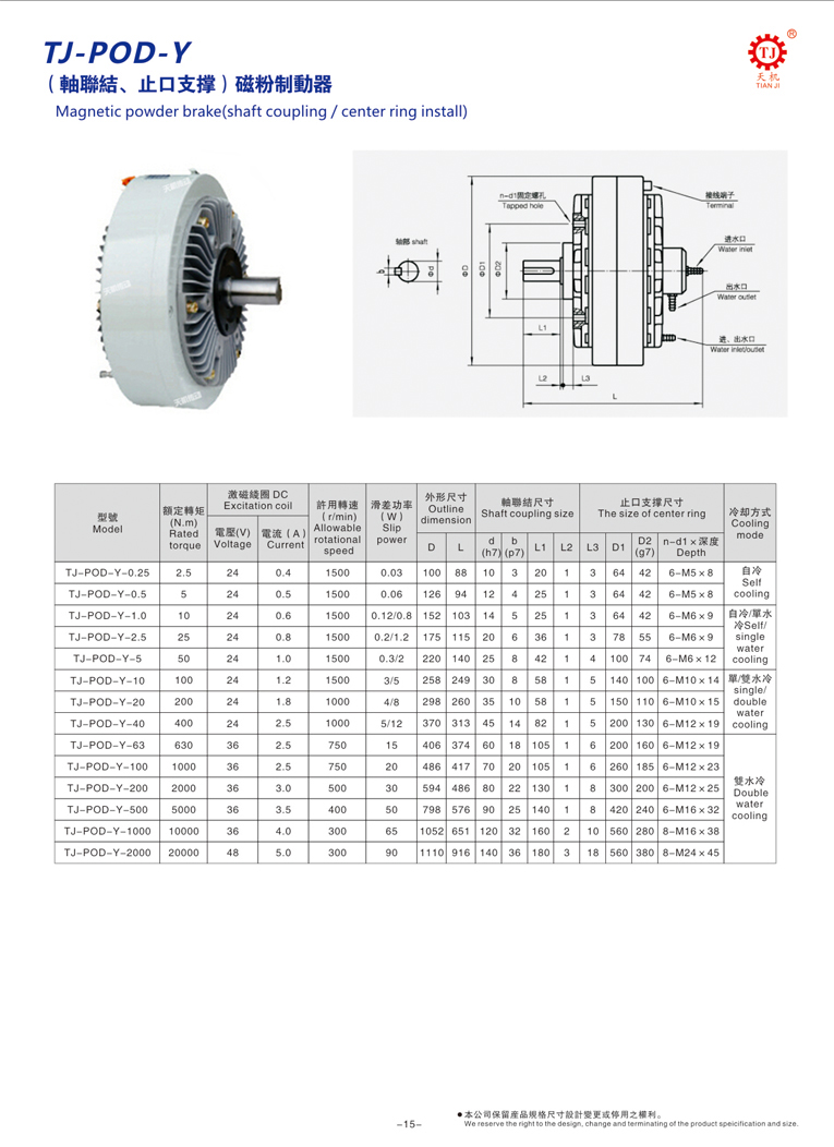 POD-Y磁粉制动器水冷式磁粉制动器特性