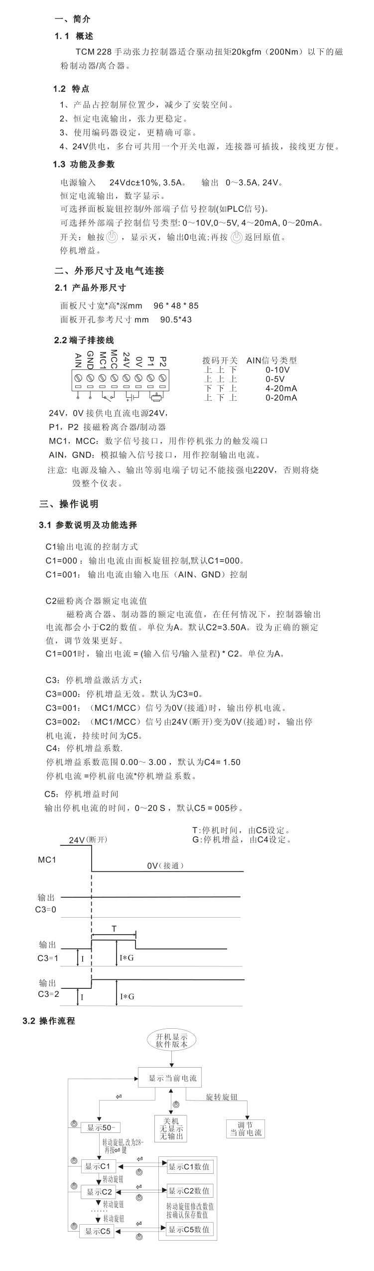 3、TCM228微型手动张力控制器功能及参数