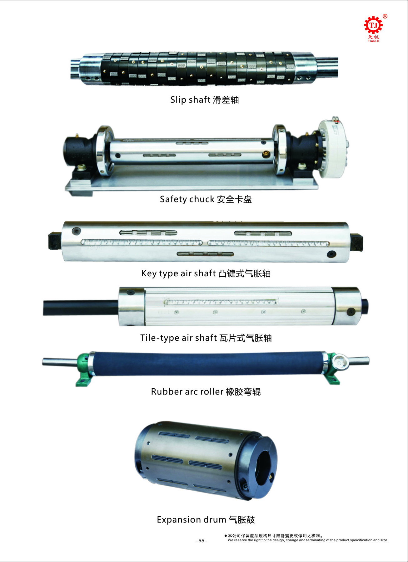 组合提供客户经济且容易安装的设计,为联结传动及脱离之类频繁动作提供快速、安全、确实及简易的联轴及脱离运作。 安全夹头传动部份的规格尺寸可依据客户机械规格及特性而设计制造。整体结构刚性优异,可承受高扭力,且安全无旋转中松脱之虑。提供可更换VT型卷轴托口,更极大的延长了使用寿命。