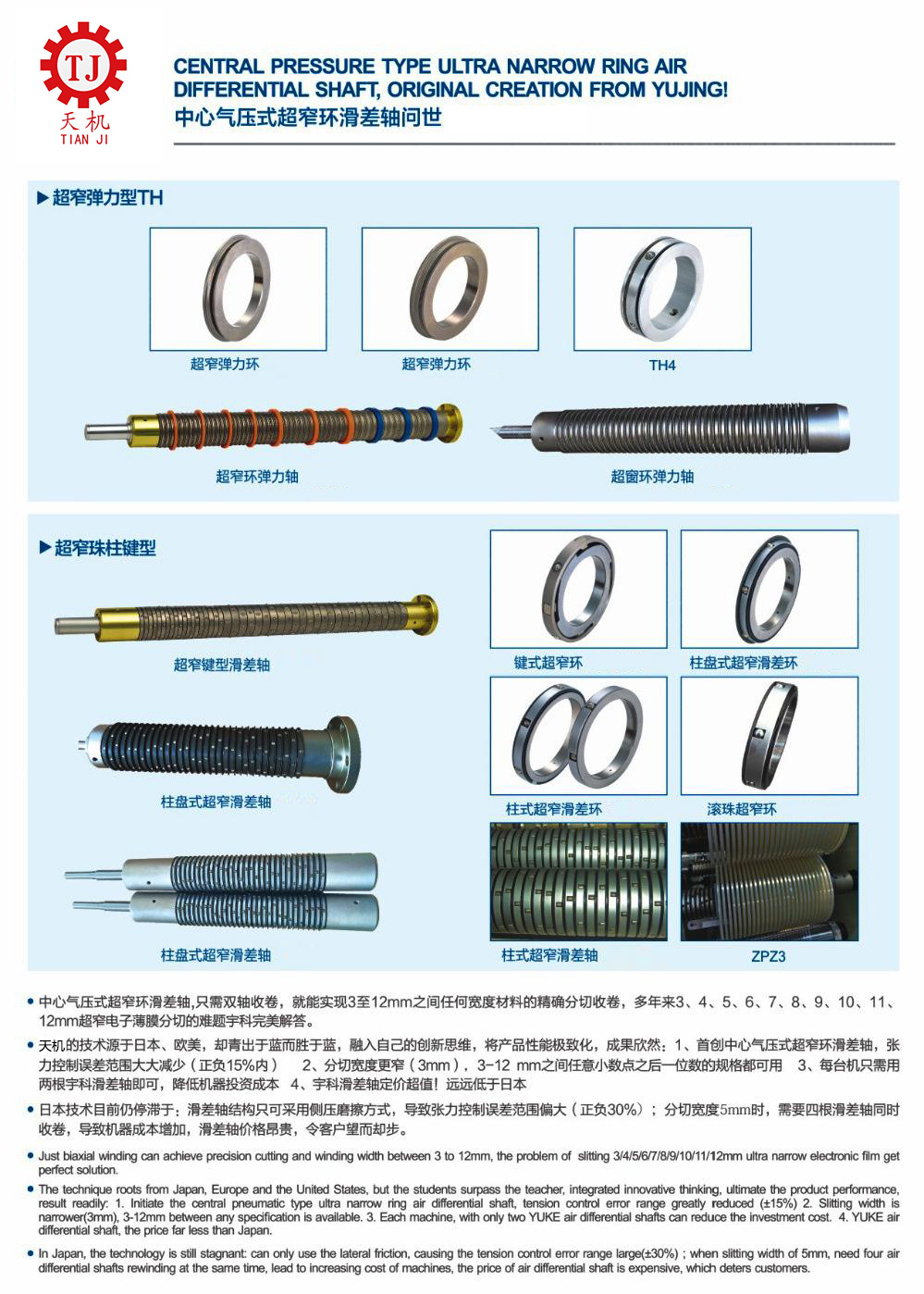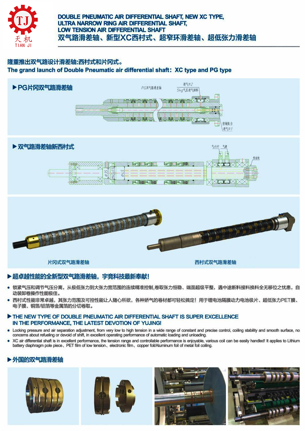这种机构设计有特殊的功能,使用空气的方法来使气胀轴运动起来,对于厚、薄、宽、窄的各种适用产品的都使用,用途相当的广,可以避免的是因为各种不同的材料二需要不断的调节方法的困然,另外机构上明显跟的上其他机械化的运行速度。另外长时间工作也不会停止运行。